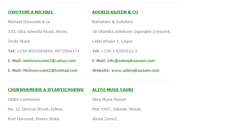 Here are contact information of some of the Intellectual Property firms/Lawyers in Nigeria. Feel free to contact any of the below firms/persons directly. For IP firms that their contact information are not included here, please write to the Director-General (NCC) for inclusion: